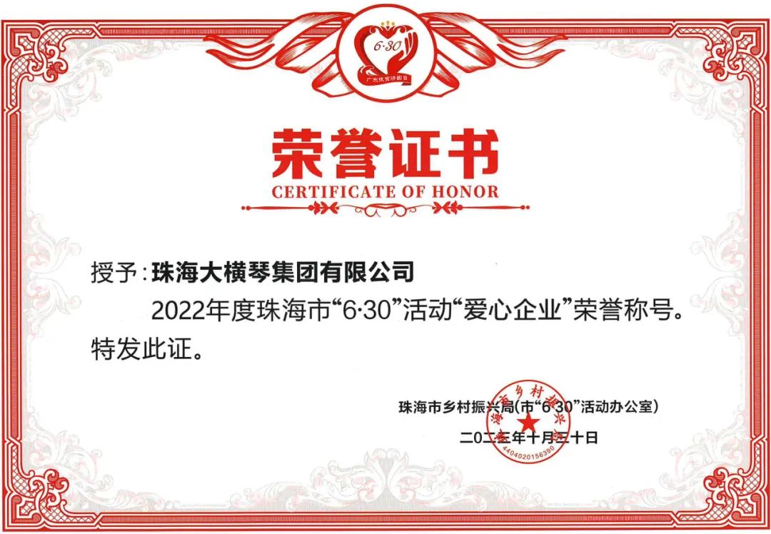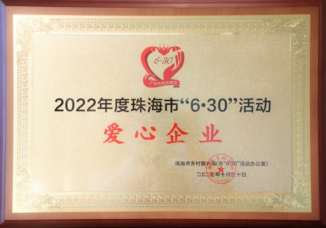 為深入貫徹黨的二十大和中央農(nóng)村工作會議精神,落實市委、市政府關(guān)于統(tǒng)籌實施鄉(xiāng)村振興戰(zhàn)略和“百縣千鎮(zhèn)萬村高質(zhì)量發(fā)展工程”工作部署,匯聚更多社會力量參與“6·30”活動,鞏固脫貧成果、助力鄉(xiāng)村振興、促進共同富裕,根據(jù)《中共珠海市委農(nóng)村工作領(lǐng)導(dǎo)小組〈關(guān)于印發(fā)珠海市2023年“6·30”助力鄉(xiāng)村振興活動工作方案〉的通知》(珠委農(nóng)組〔2023〕6號)精神,市鄉(xiāng)村振興局(市6·30活動辦)開展2022年度珠海市“6·30”活動“愛心企業(yè)、愛心團體、愛心個人”評選活動,向社會傳遞珠海人民樂善好施的精神品德,激發(fā)社會各界共襄善舉、助力鄉(xiāng)村振興。經(jīng)評審,珠海大橫琴集團有限公司(以下簡稱大橫琴集團)被授予2022年度珠海市“6·30”活動“愛心企業(yè)”榮譽稱號。